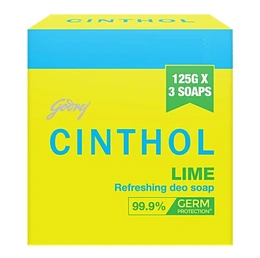 Cinthol Refreshing Deo Lime Bath Soap, 99.9% Germ Protection, 125 g (Pack of 3)