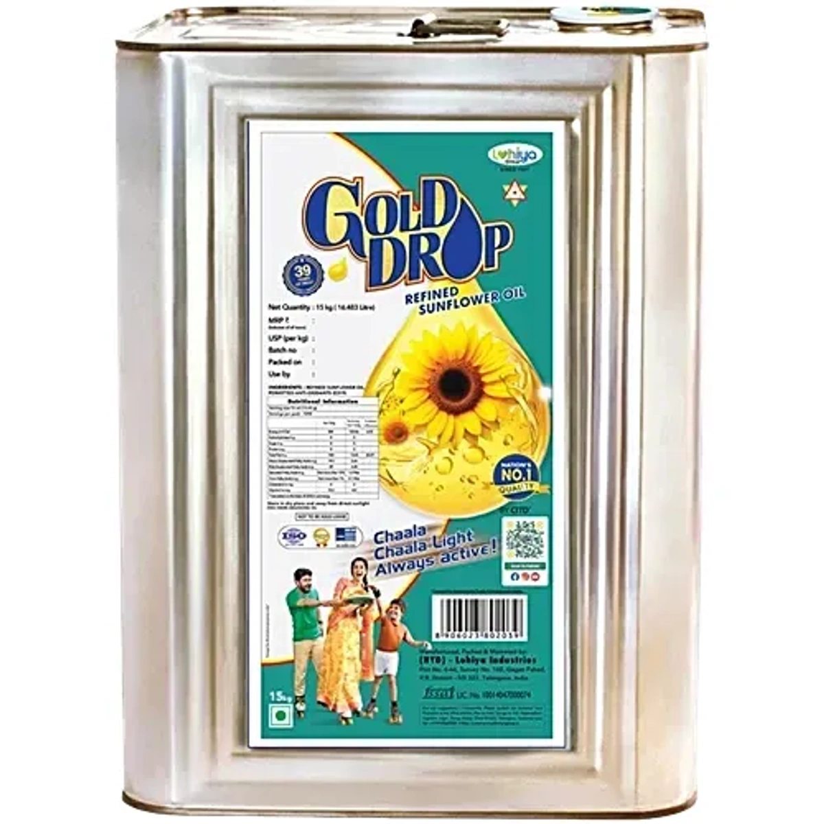 Gold Drop Refined Sunflower Oil, (15 Litre) Tin