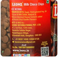 Leonz Milk Choco Chips Premium for Decoration of Cakes, Ice Creams, Muffins, Cookies ,Biscuits and Baking Chocolate Chips - 100gms