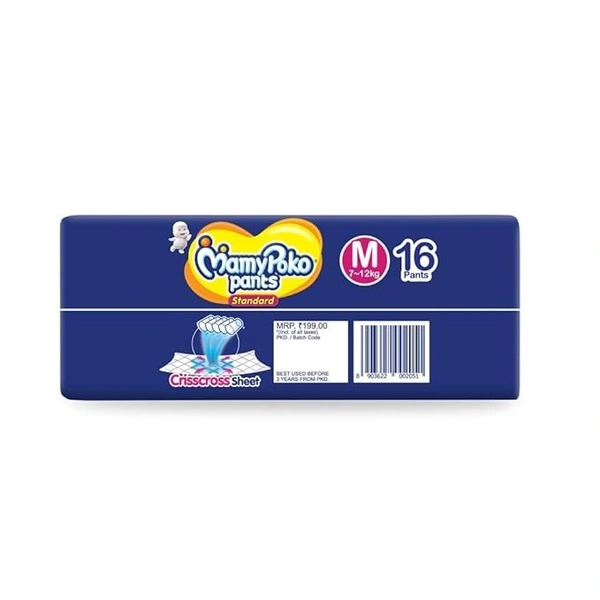 MamyPoko Pants Standard Diapers, Medium (M), 16 Count, 7-12 kg