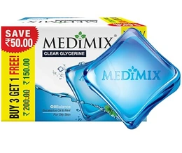 Medimix Clear Glycerine Oil Balance Bathing Bar Soap for Oily Skin 100g (3 + 1 Combo Pack) | Infused with Eucalyptus Oil & Mint