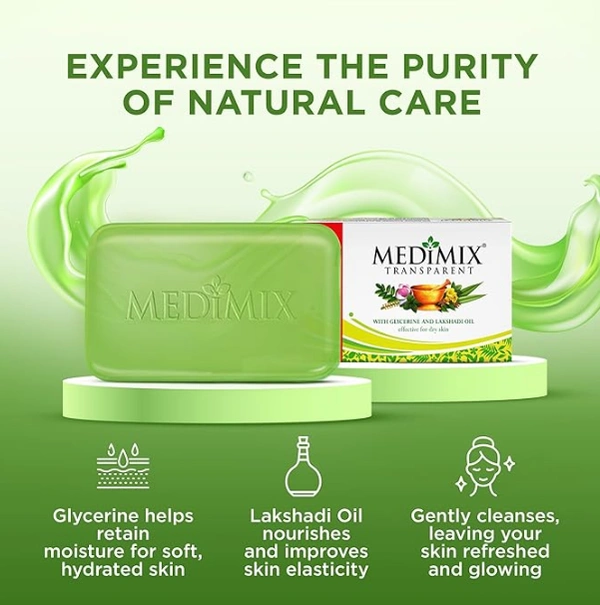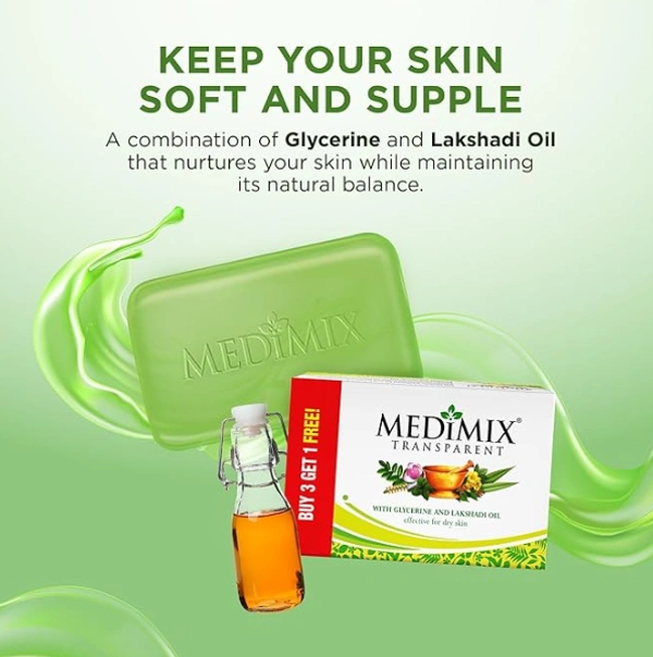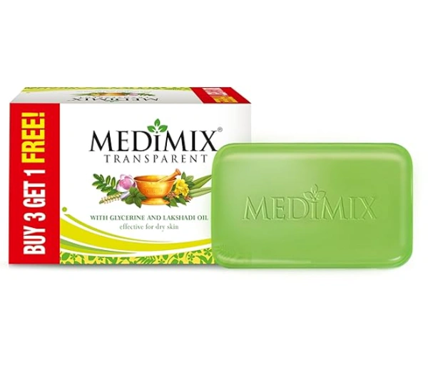Medimix Transparent Ayurvedic Traditionally Made Bathing Bar Soap 125g (3 + 1 Combo Pack) | Infused with Glycerine and Lakshadi Oil | Effective for Dry Skin
