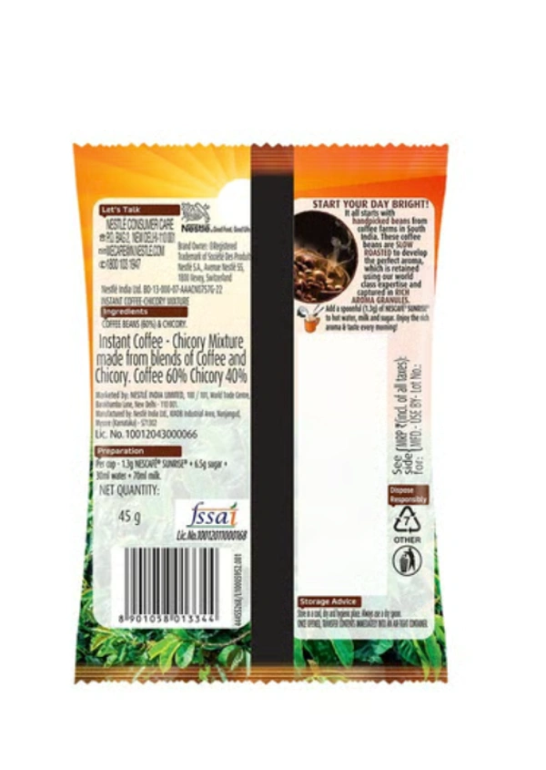 Nescafe Sunrise Instant Coffee Powder, Strong Taste, Coffee Chicory Mix 45 g