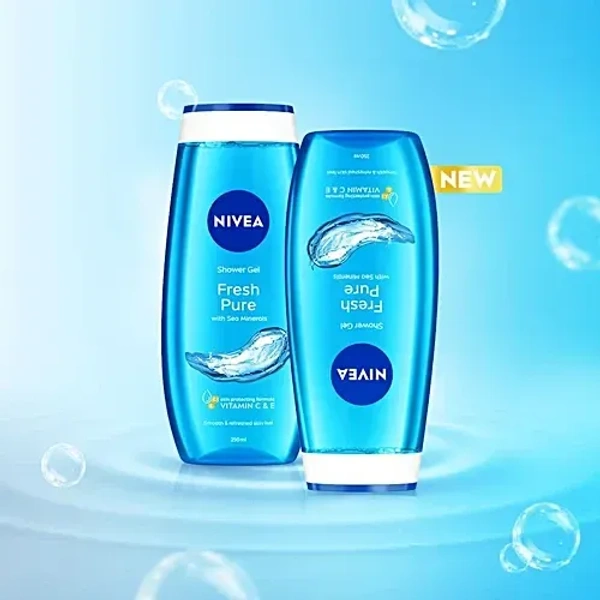 Nivea Fresh Pure Shower Gel - Sea Minerals & Aquatic Scent, Refreshing, Moisturising, 250 ml