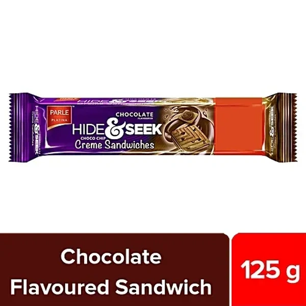 Parle Platina Hide & Seek Chocolate Flavoured Choco Chip Creme Sandwiches, 100 g (Get 25 g Extra)
