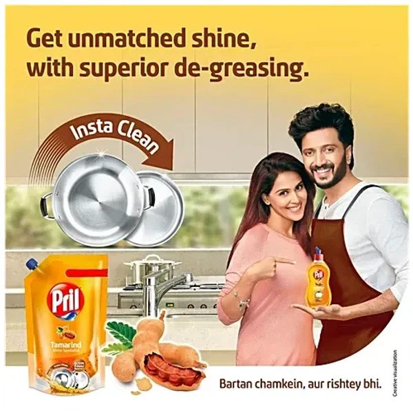 Pril Tamarind Shine Specialist Dishwash Liquid Gel, 100 ml Pouch