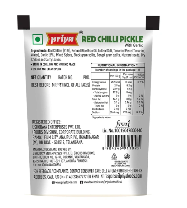 Priya Red Chilli Pickle With Garlic pack of 2 (2x35g)