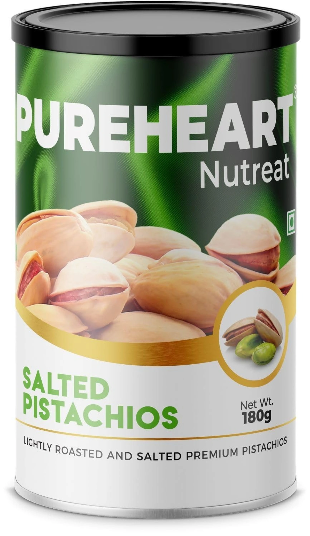 Pureheart Nutreat Salted Pistachios (180 gm) Natural Premium Lightly Roasted Pista/Dry Fruit - Delicious & Crunchy - Resealable Pouch