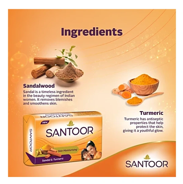 Santoor Skin Moisturidsing Sandal & Turmeric Bathing Soap, 100 g