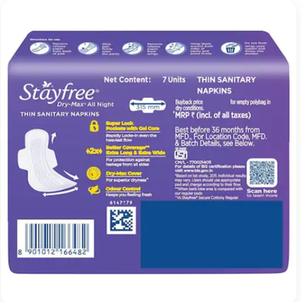 Stayfree Dry Max All Night Ultra Dry Sanitary Pad 7 pcs XXL