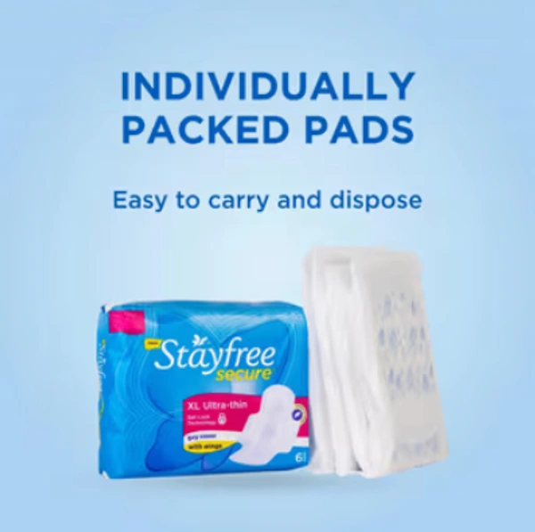 Stayfree Secure Extra Large Ultra Thin Sanitary Pads with Dry Cover & Wings - XL - Pack of 6